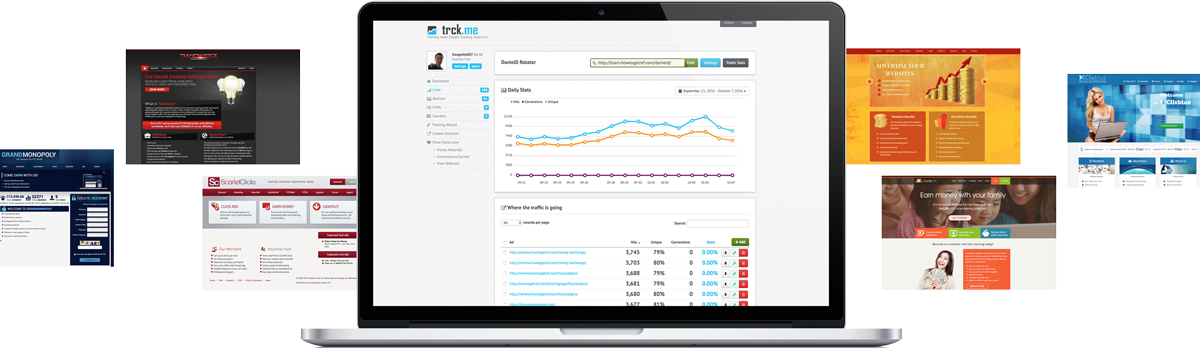 Les bannières s’affichent à travers des rotateurs de bannières situés sur les pages d’accueil, les pages internes, et les barres de surf sur plus de 20 sites web Paid-To-Click: voir la liste ici.